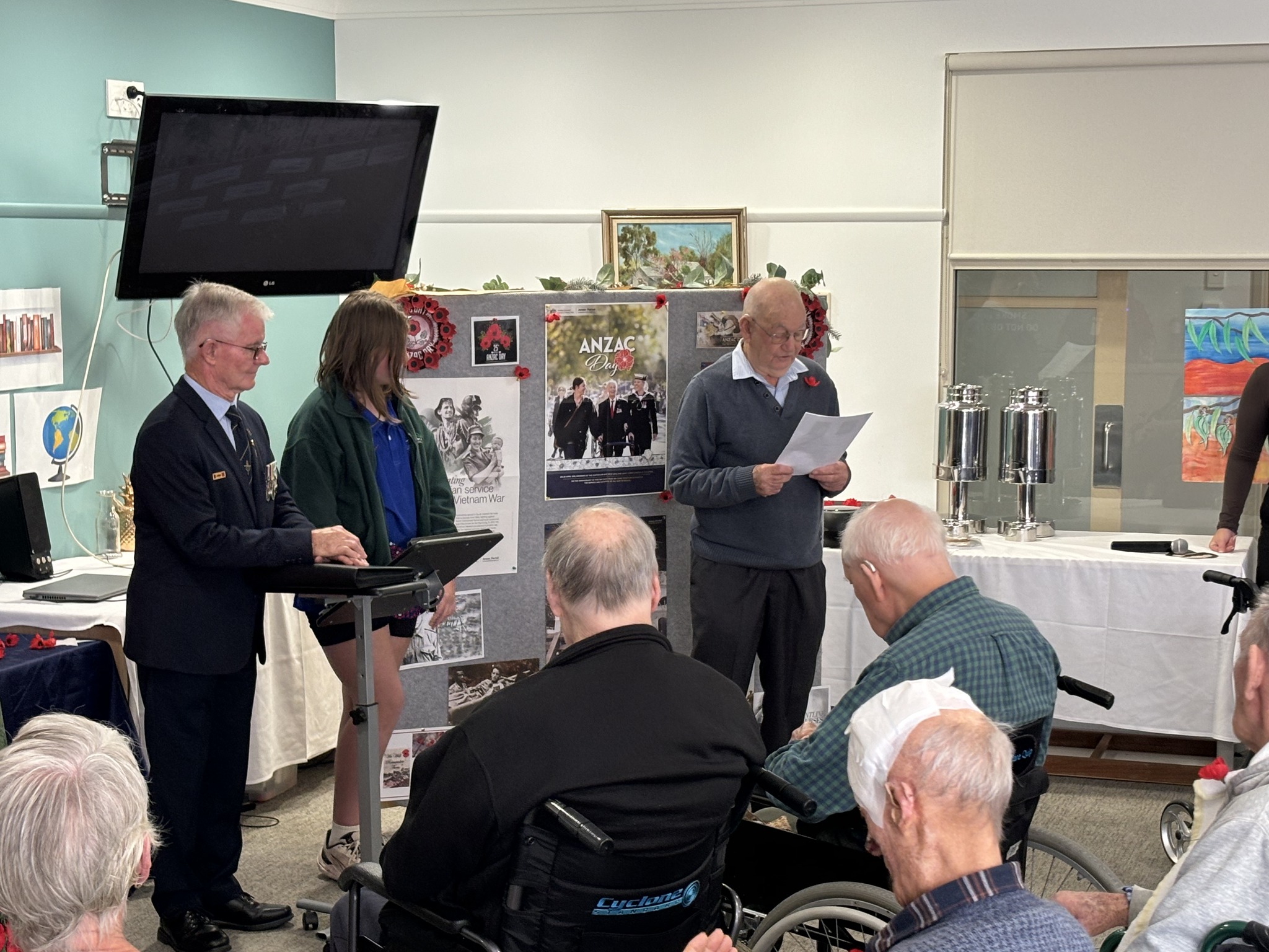 Illoura residents gathered to pay tribute ahead of ANZAC Day, led by Bob Hayward of Wangaratta RSL Branch. The annual ANZAC display brightened the walls (including a beautiful banner that has been crafted and donated by a family member). The morning concluded with traditional homemade ANZAC biscuits being shared by residents and guests.